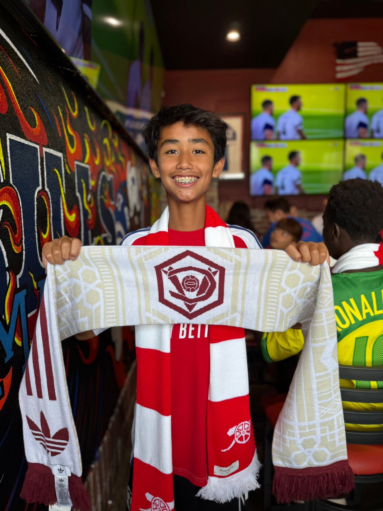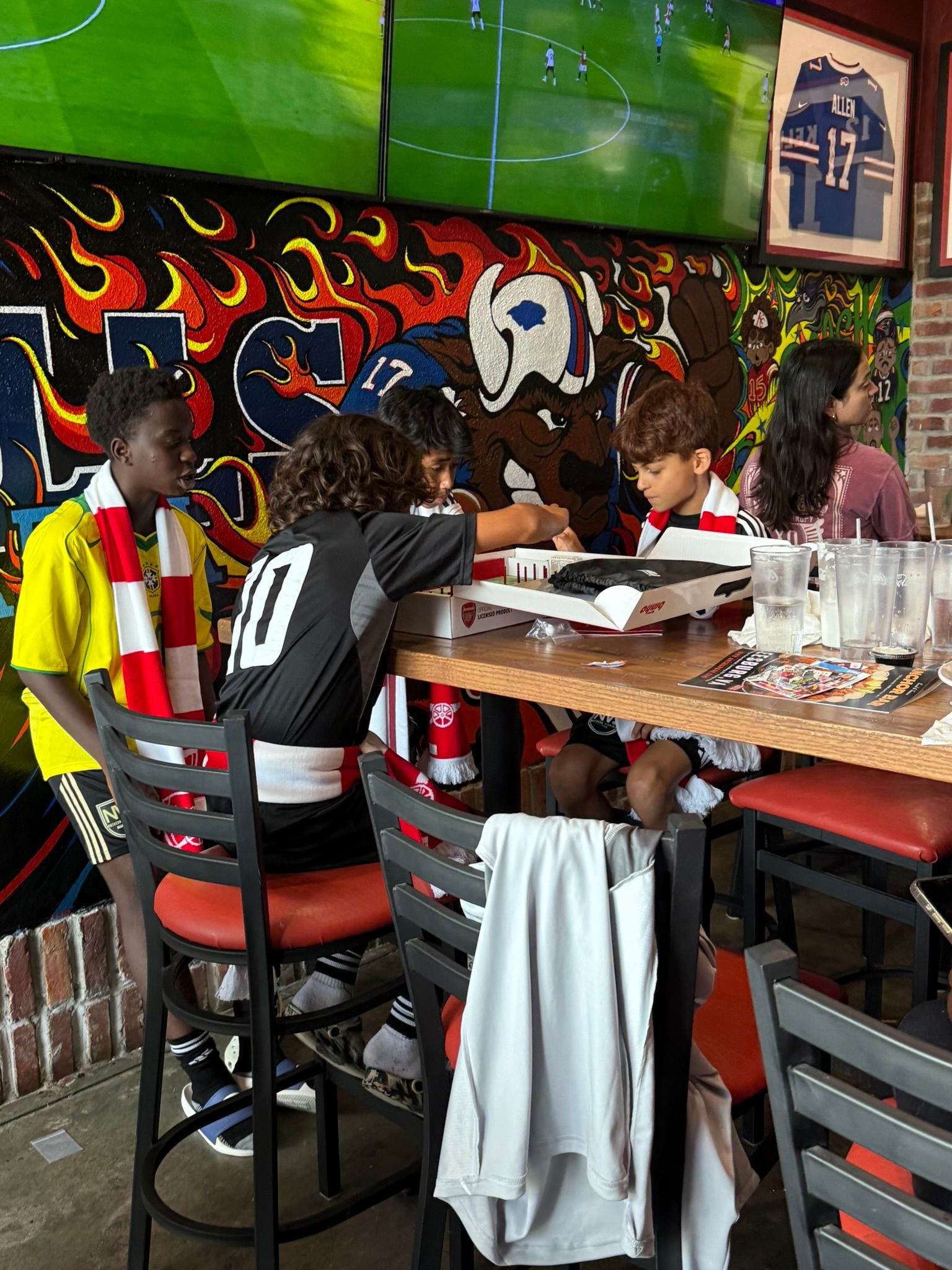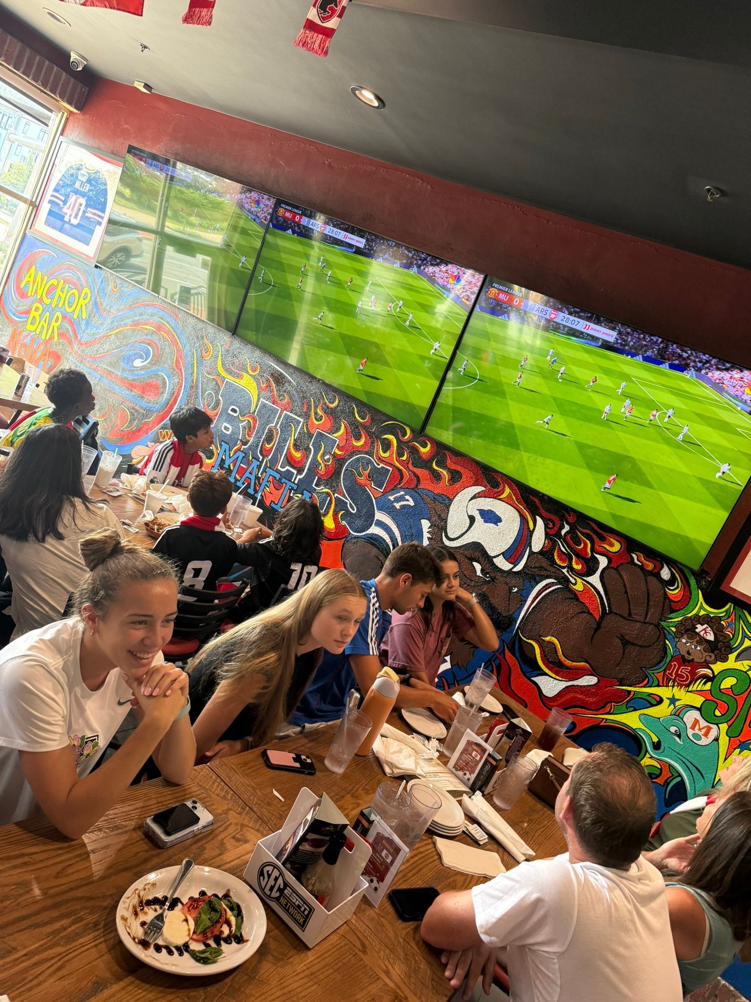 Anchor Bar far exceeded expectations. At 11:30 AM on a Sunday, in the midst of the Loudoun Premier Cup tournament, the place was packed with fans! Many of the 120+ people came with their Arsenal jerseys and scarves, with their energy invested in the start of a new Premier League season.