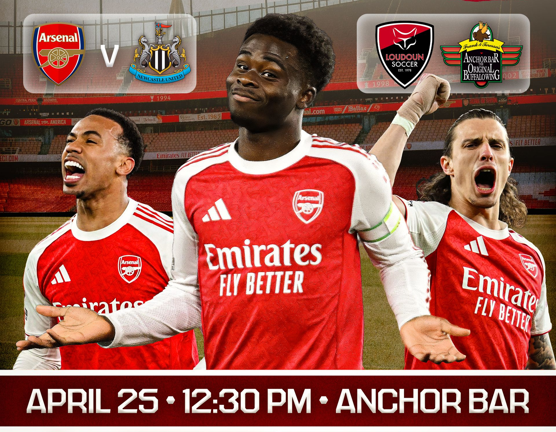 The Gunners will battle Newcastle United to stay at the top of the table. Join us once again at Anchor Bar NOVA!